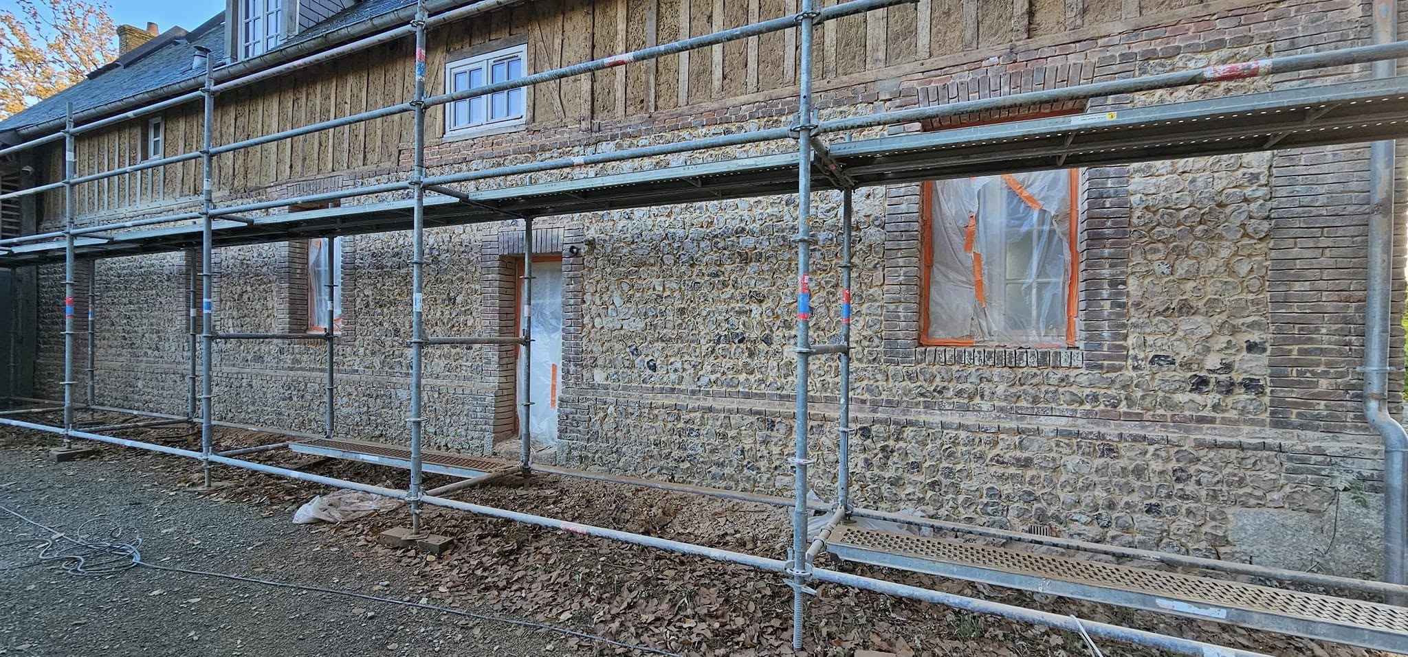 - Rénovation de façades (briques et silex, joints à la chaux)